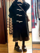 Long Wool Blend Duffle Coat for Women – Classic Toggle Winter Overcoat