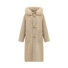 The classic duffle silhouette, detailed with toggle button closures and a hooded neckline, blends vintage charm with modern comfort. Its loose, relaxed fit allows easy layering over sweaters and knitwear, making it a perfect choice for casual days or polished winter looks.