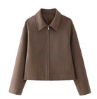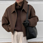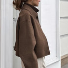 Discover timeless elegance with the Noble Wear Women’s Khaki Wool Blend Short Coat, designed for effortless sophistication in cooler seasons. Crafted from a luxurious cashmere-wool blend, this short jacket offers a smooth, structured silhouette with a soft hand feel. The clean lines, turn-down collar, and subtle zipper closure create a refined minimalist look perfect for modern wardrobes.
