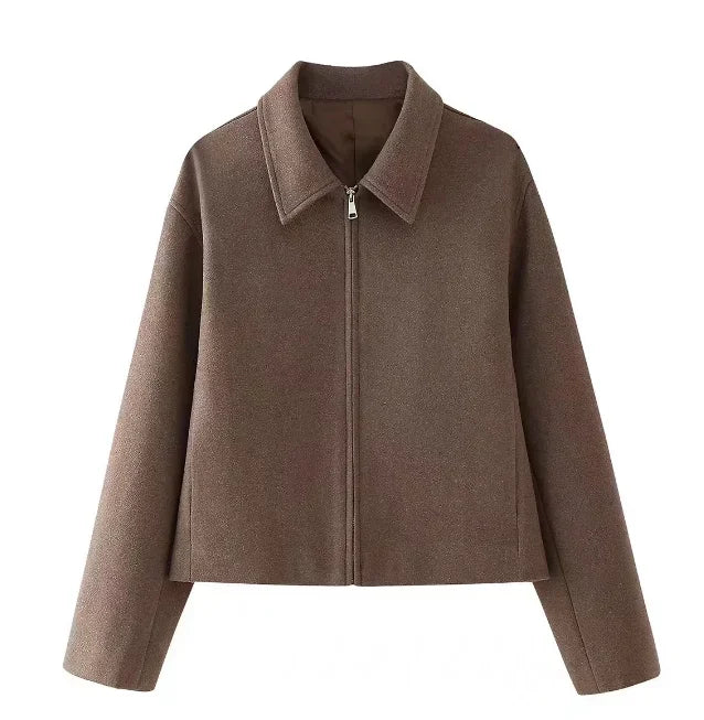 Turn-down collar and front zipper closure for a polished appearance