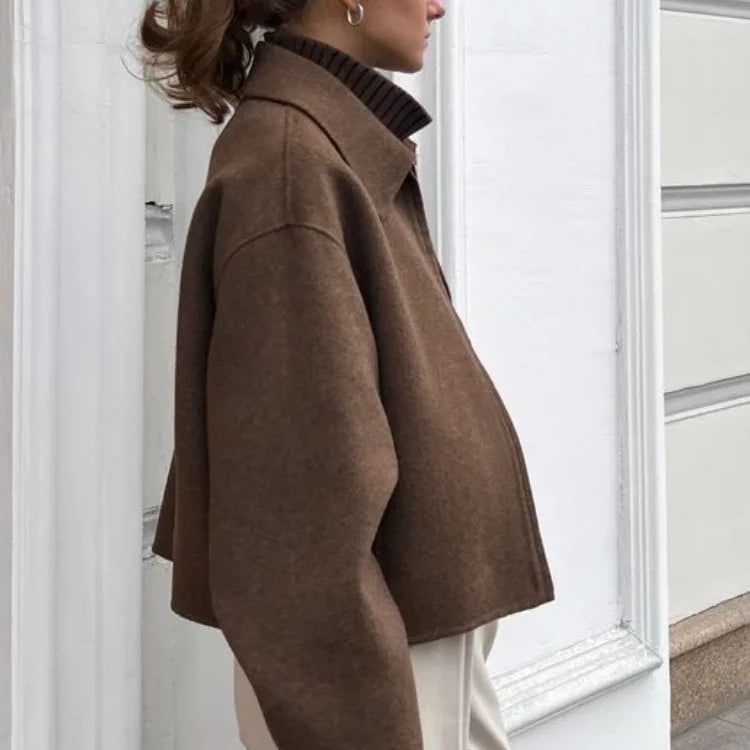 Noble Wear Women’s Khaki Wool Blend Short Coat