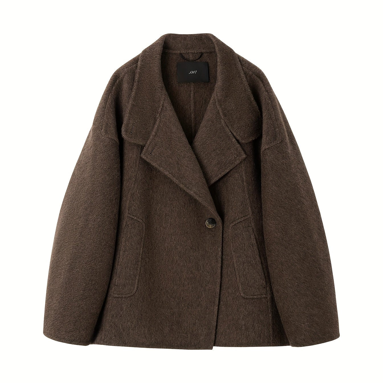 Classic double-breasted front with structured lapel collar