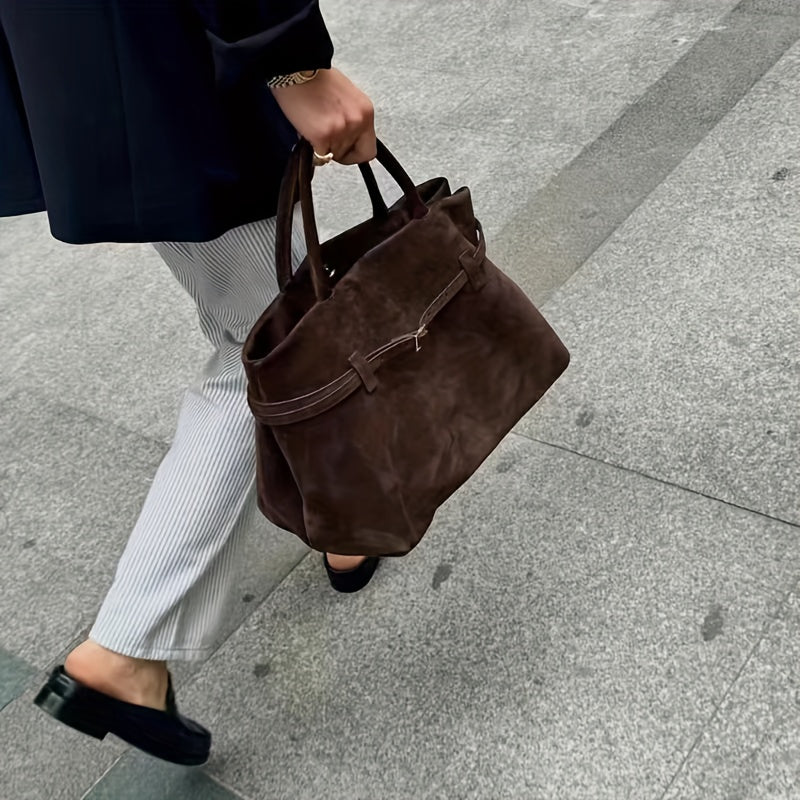 Women’s Vintage Suede Tote Bag – Elegant Shoulder Bag for Work
